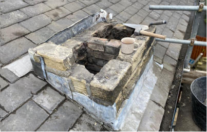 including lead flashing, pointing and replacement of bricks.